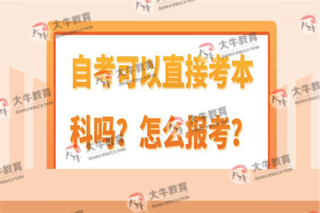 自考可以直接考本科,自考没有入学考试,是典型的宽进严出,对报名的考生没有学历、年纪、性别、地域、种族等诸多方面的限制,但考生须知,自考生在申请自考本科毕业时需要具备国家认可的大专文凭才可以申请毕业证书。